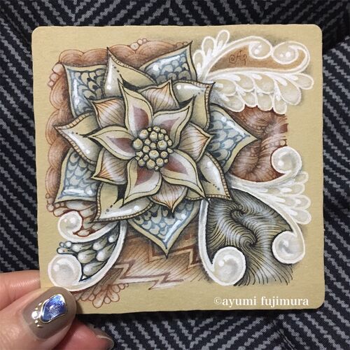 こんばんは。 ゼンタングル認定講師のAyumiです☺︎ (名前クリックでプロフィールに飛びます*⋆✈) 昨日の夜は同期と新年会という名のお絵描き会をしました! タイルのサイズと色を決めて,ストリングとタングルも決めて描きました! こうして同期と描きながらお…